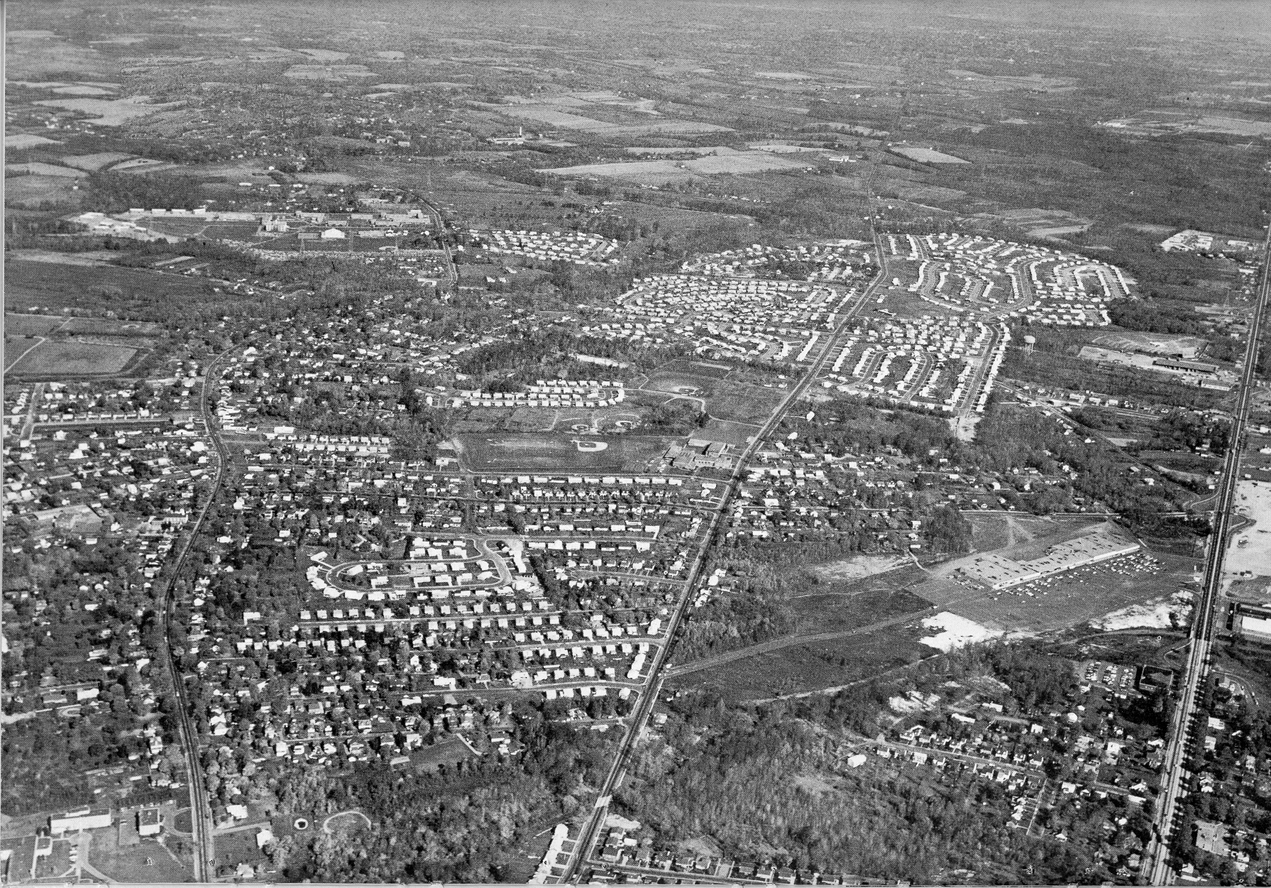 When the aerial photo above was taken in 1963, Trenton was still a commercial and professional hub for central and southern New Jersey. Development had radiated out from it, in the northern direction through adjacent Lawrence Township.